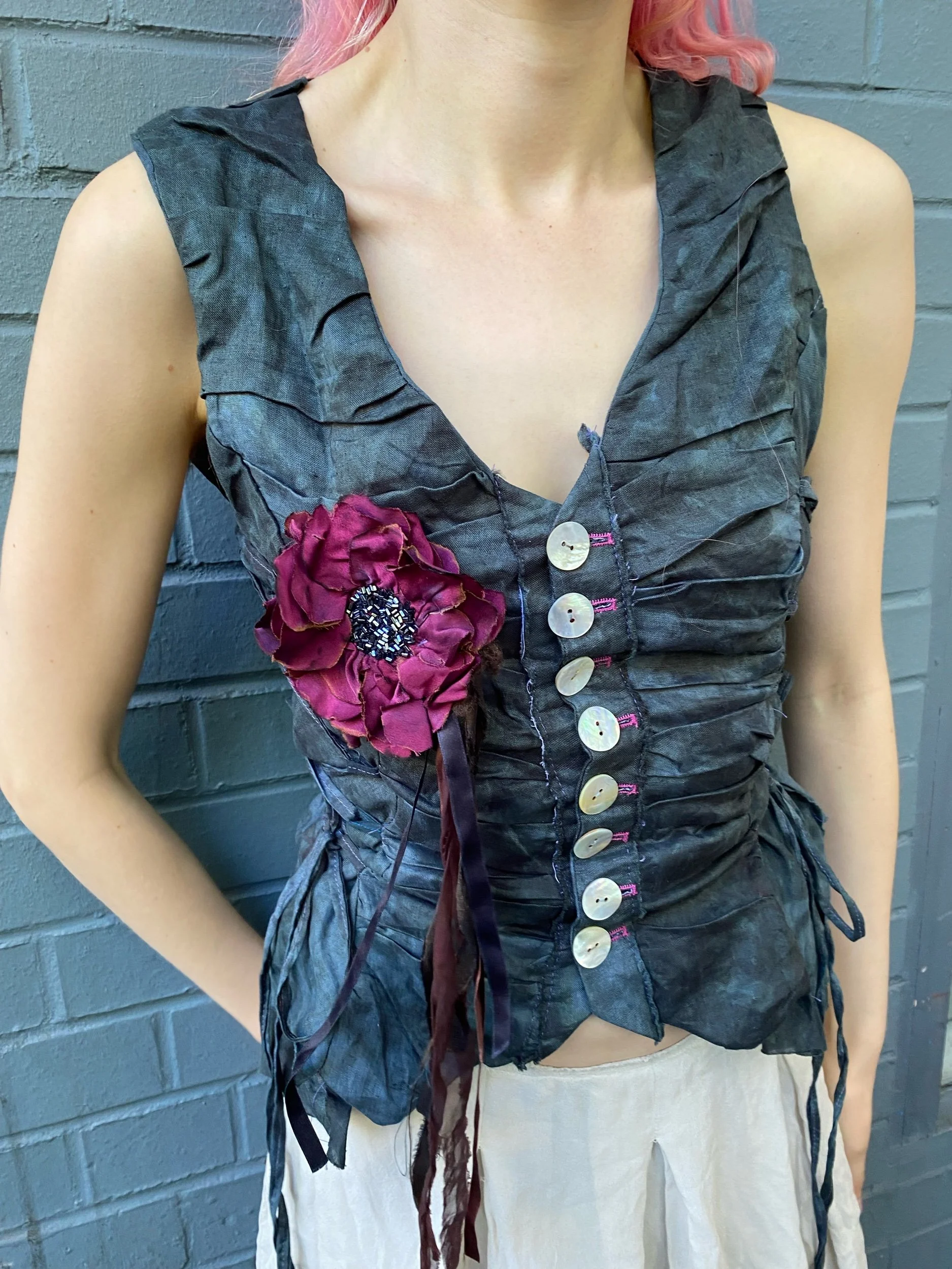 Sssilk666 Boutique Categories: Tous Suede Linen Silk Leather Tous | Suede | Linen | Silk | Leather | Lilac silk flower corsage £65.00 Plum silk corsage £65.00 Raspberry Ice cream silk corsage £65.00 Poppy silk corsage £65.00 Rust flower corsage £65.00 Raw edge Lambskin breastplate £185.00 Jet leather pastry bonnet £215.00 Sold out Linen and freshwater pearl button jacket £325.00 Chocolate Button Silk Skirt £130.00 Chocolate Button Silk Dupion Top £165.00 Chocolate Silk flower corsage £65.00 Sold out Acai silk flower corsage £65.00 Sold out Lavender silk flower corsage £65.00 Sold out Leather pastry bonnet £215.00 Sold out Mink Silk Georgette hooded bias gown £235.00 Ruched linen waistcoat £155.00 Sold out Raw edge lambskin breastplate khaki £185.00 Sold out Black leather tassel breastplate £185.00 Sold out Safety pin raw edge breastplate £150.00 Sold out Raw edge lambskin breastplate black £185.00 Sold out Seaweed fire dress £165.00 Digital flame dress £165.00 Shepherd’s delight dress £165.00 Linen and freshwater pearl spiral top denim £245.00 Sold out Linen and freshwater pearl spiral top turquoise £275.00 Silk flower aviator hat £165.00 Sold out Silk flower corsage maroon £65.00 Sold out Silk flower corsage magenta £65.00 Sold out Silk flower corsage lilac £65.00 Sold out Raw edge lambskin breastplate £185.00 Black suede and freshwater pearl waistcoat £185.00 Sold out Mouldy lettuce dress £150.00 Sold out nightshade dress Sale Price: £95.00 Original Price: £150.00 Sold out Carte-cadeau from £50.00